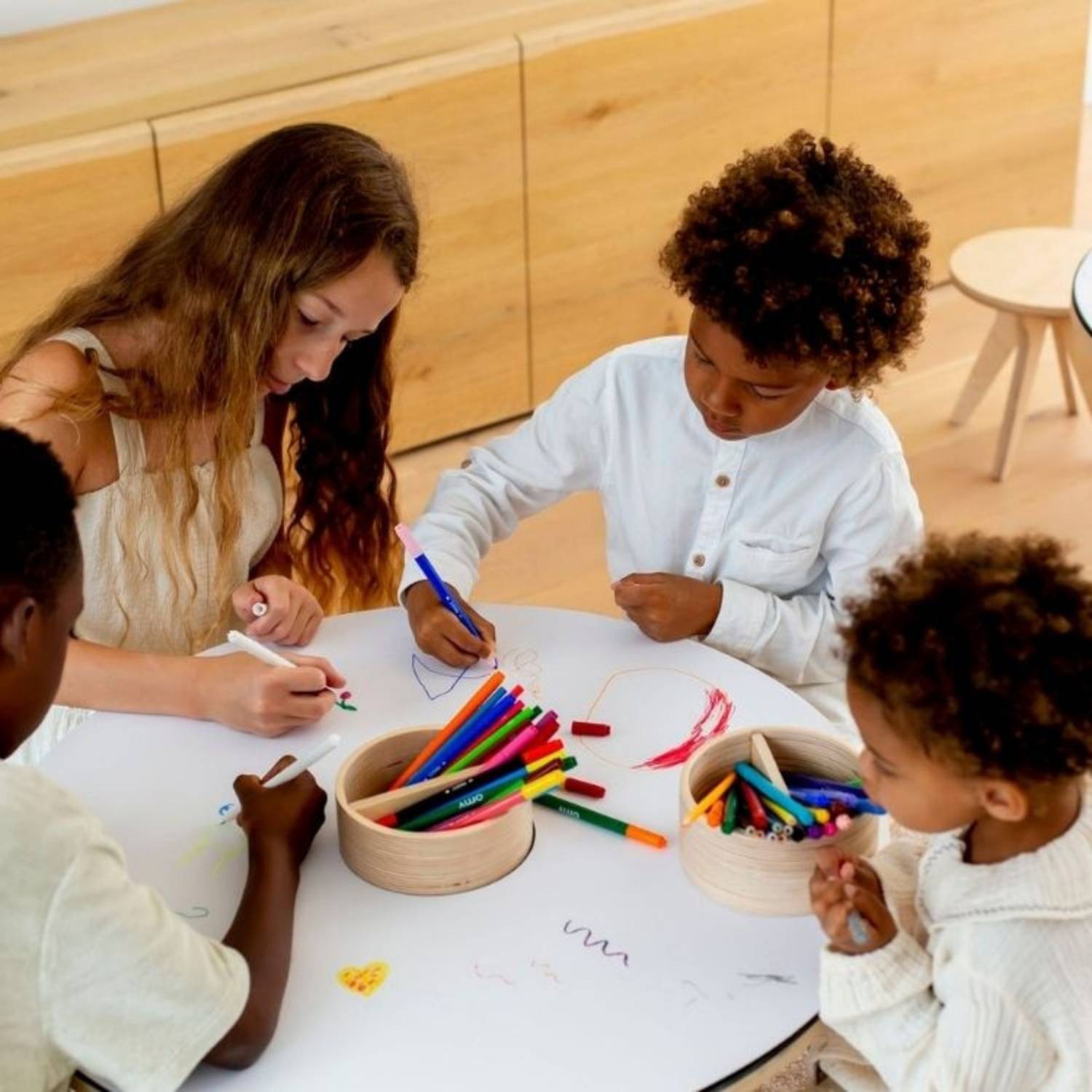 This table for kids is more than a simple table. This is a smart drawing table with a minimalist and Scandinavian design invented and created for children! Children can draw on their table, easily accessible because it is at their height (H48cm). They can even draw with their brothers and sisters or friends!