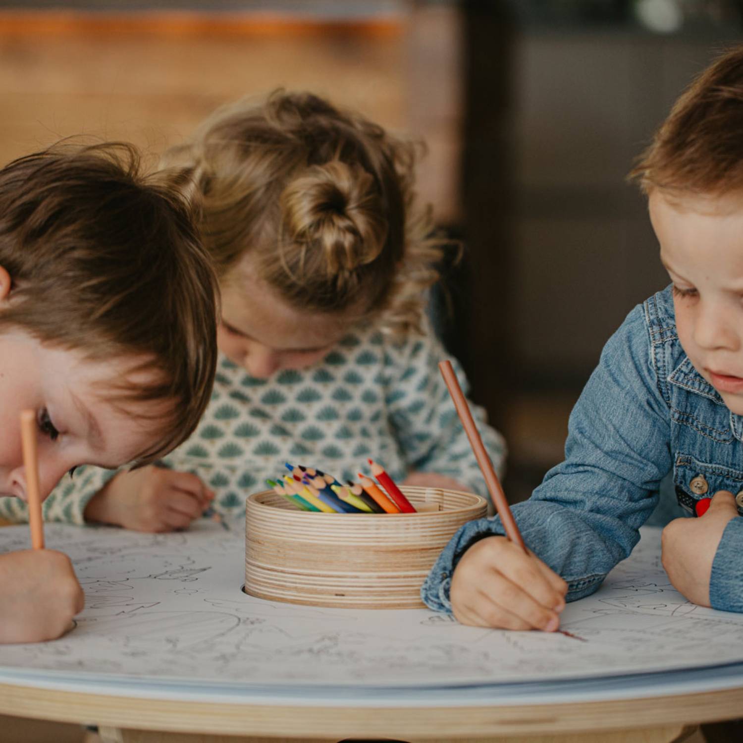 The Drawin’table and stools are made in Latvia with high quality birch wood. We are proud to work with a family-owned factory that has used its know-how and skills to develop the Drawin’table and its ingenious system, without nails or screws.
