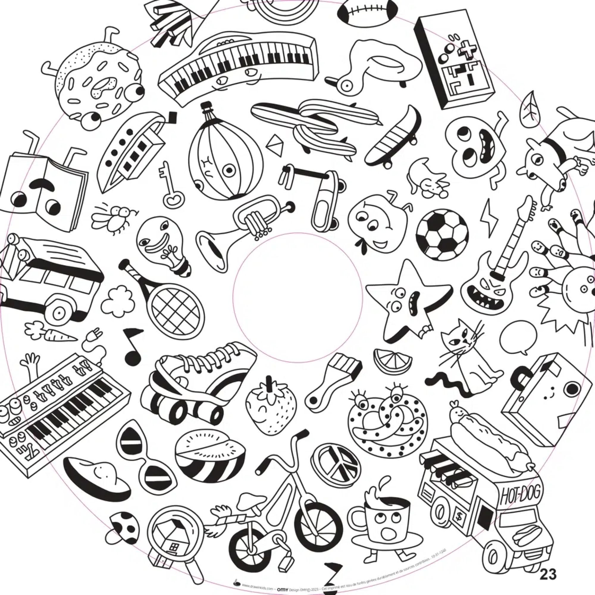 Specially adapted for the Drawin’table, this refill of papers in collaboration with the famous French brand of giant coloring pages OMY is made up of 10 white drawing pages + 10 coloring sheets.
