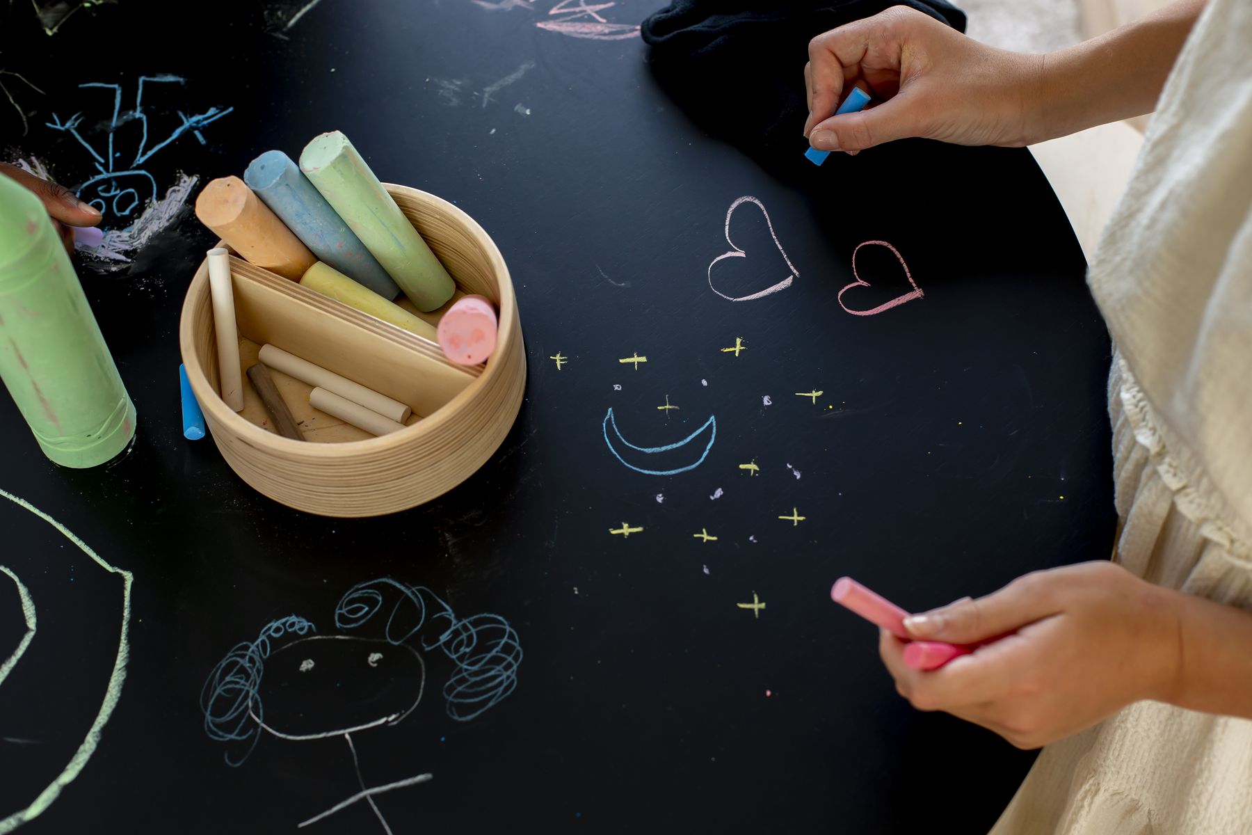 Thanks to its open, round format and frameless design, the Drawin’board® encourages kids to express themselves freely—alone or with others. It promotes independence, fine motor skills, and imagination.